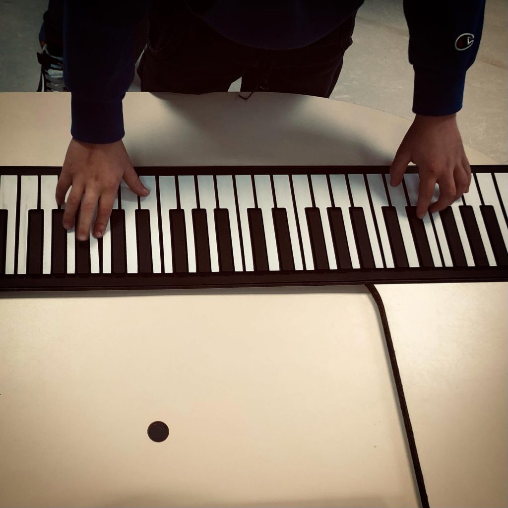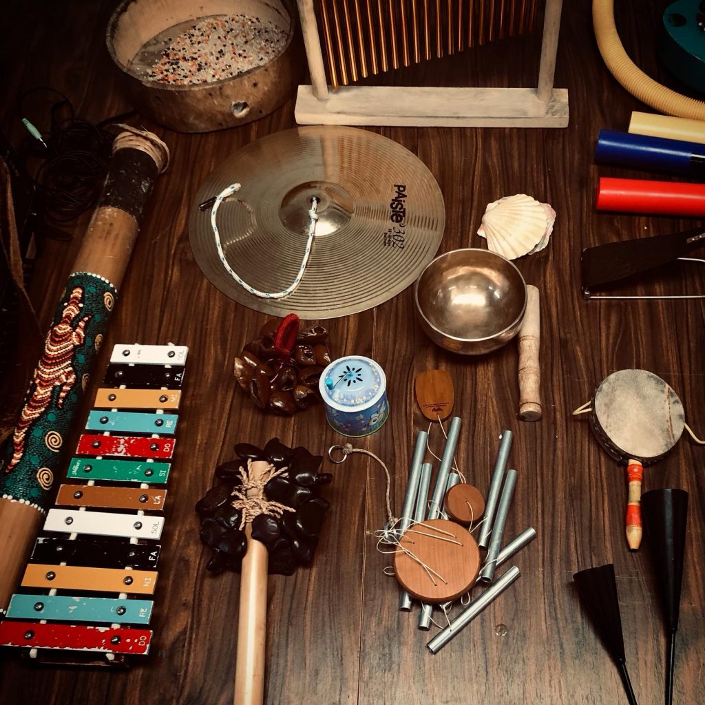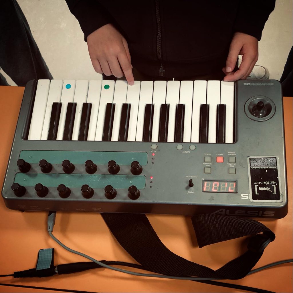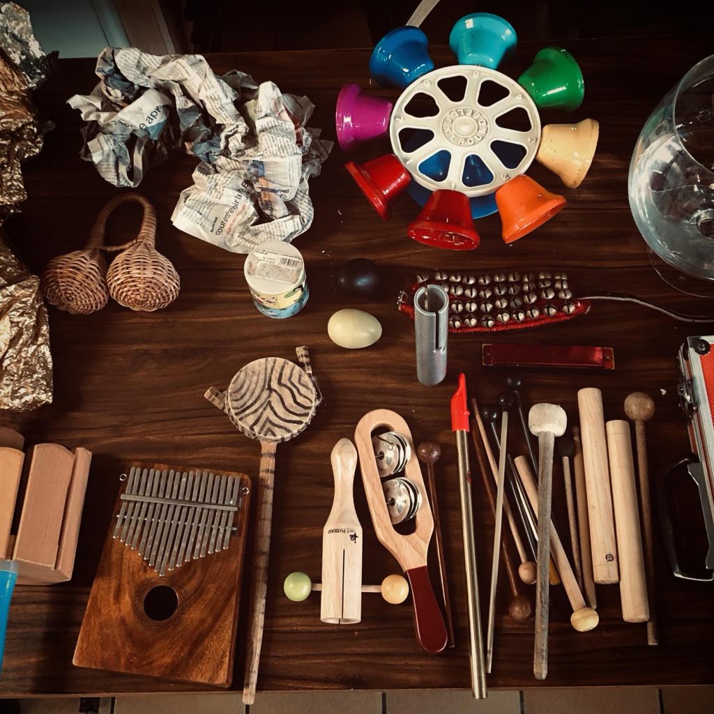 En atelier le public utilise des objets sonores, des instruments, des objets électroniques, des appareils midi relié à l’ordinateur.